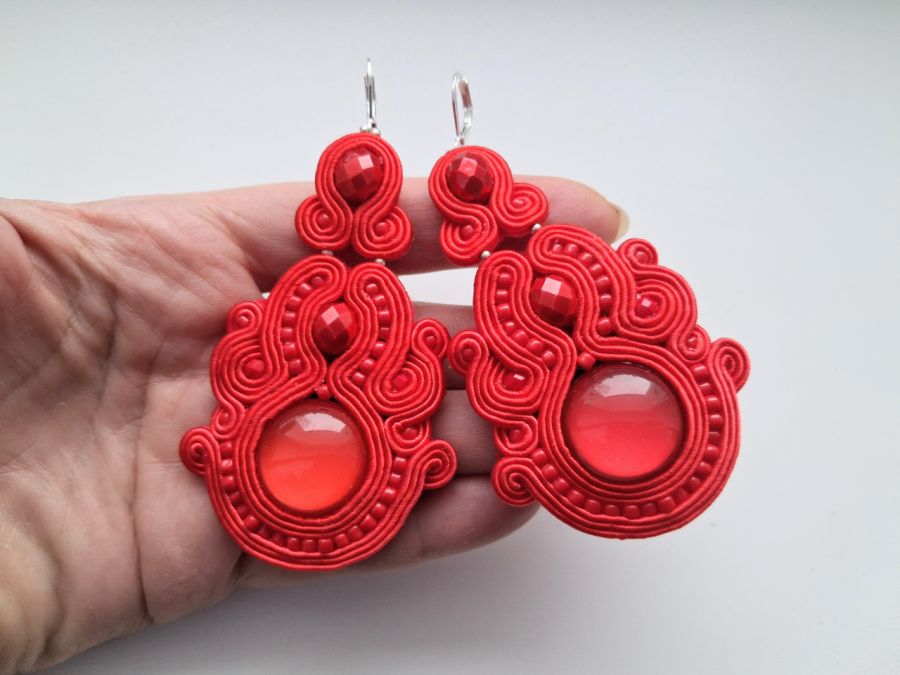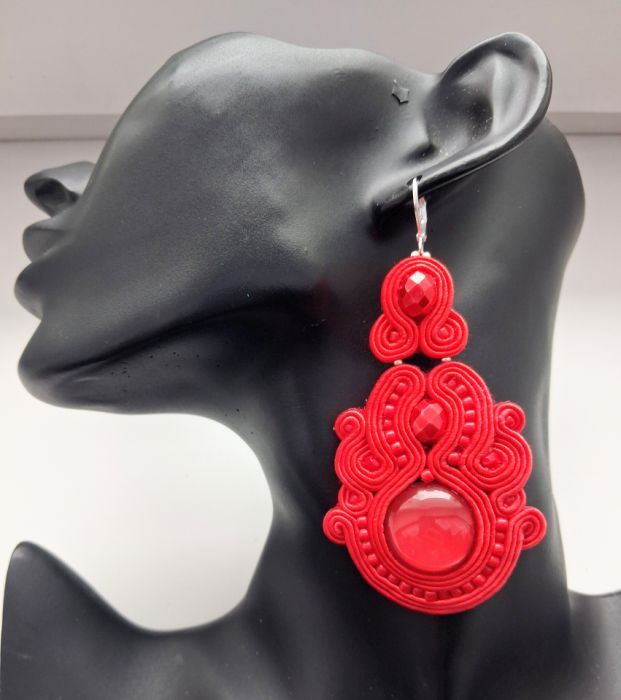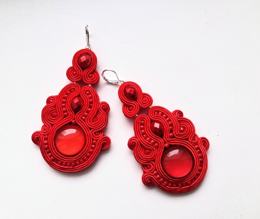 Kolczyki wykonane w modnej technice haftu sutaszowego. Jest ona pracochłonna, ale daje piękne efekty.