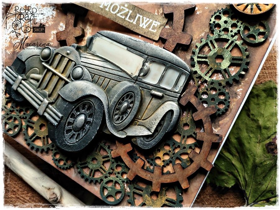 Oryginalna, przestrzenna kartka z autem retro 3D