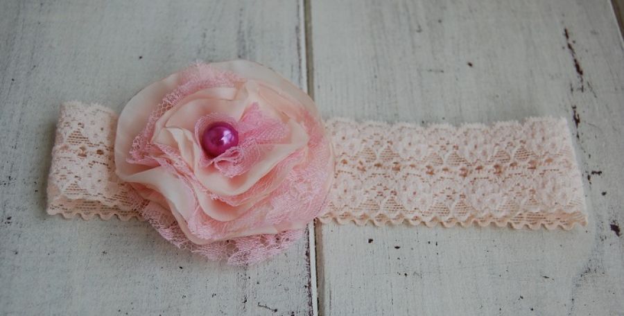 Retro opaska niemowlęca - opaska do włosów ozdobiona kwiatem w stylu retro. Kwiat na opasce to wyjątkowa retro odmiana róży w różowo-beżowej tonacji. Wykonany z satyny o delikatnym beżowym odcieniu, różowej koronki, dodatkowo ozdobiony dużym kontrastowym koralem. Opaska wykonana na elastycznej, rozciągliwej gumokoronce - podkreślającej klimat retro.