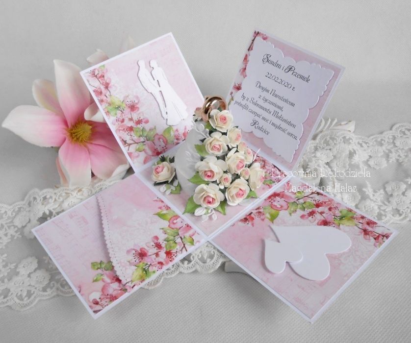 Kartka ślubna w pudełku, śliczna, delikatna, subtelna, wykonana z niezwykłą starannością. Bardzo szybka dostawa. Polecam.