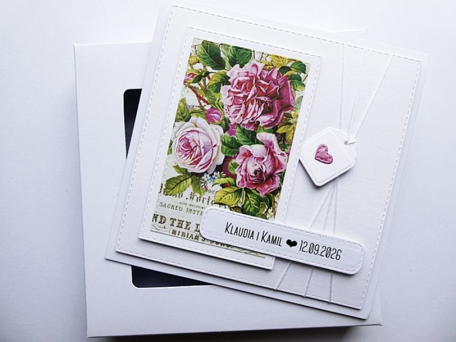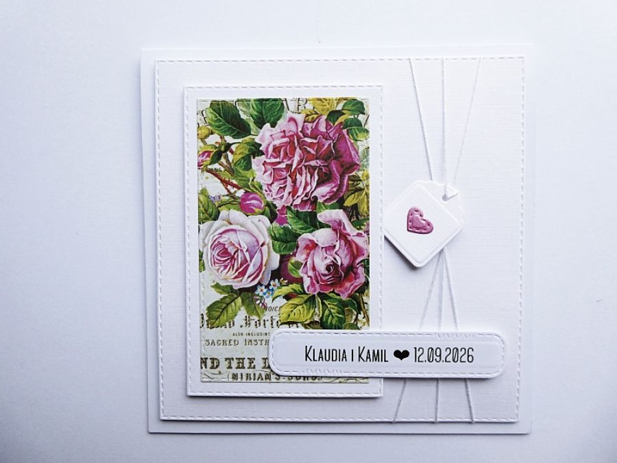 Zadaj pytanie dotyczące produktu: Romantyczna kartka ślubna z różami handmade