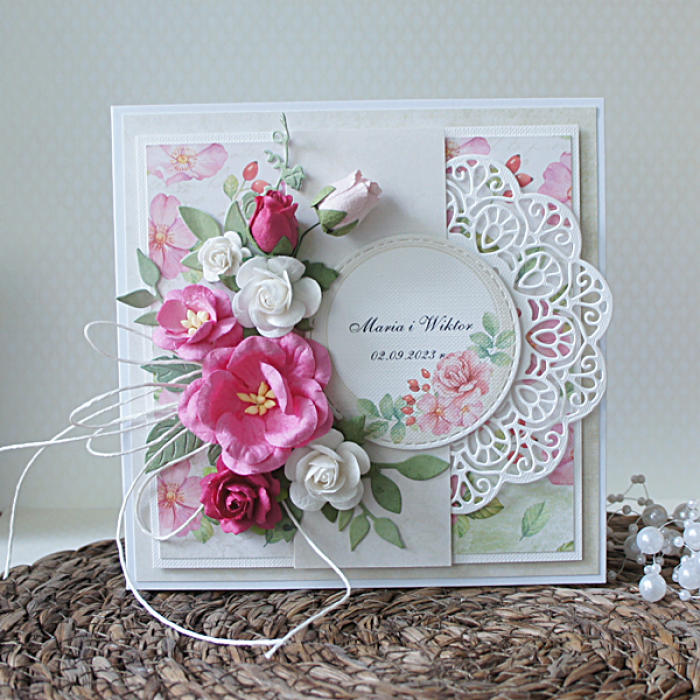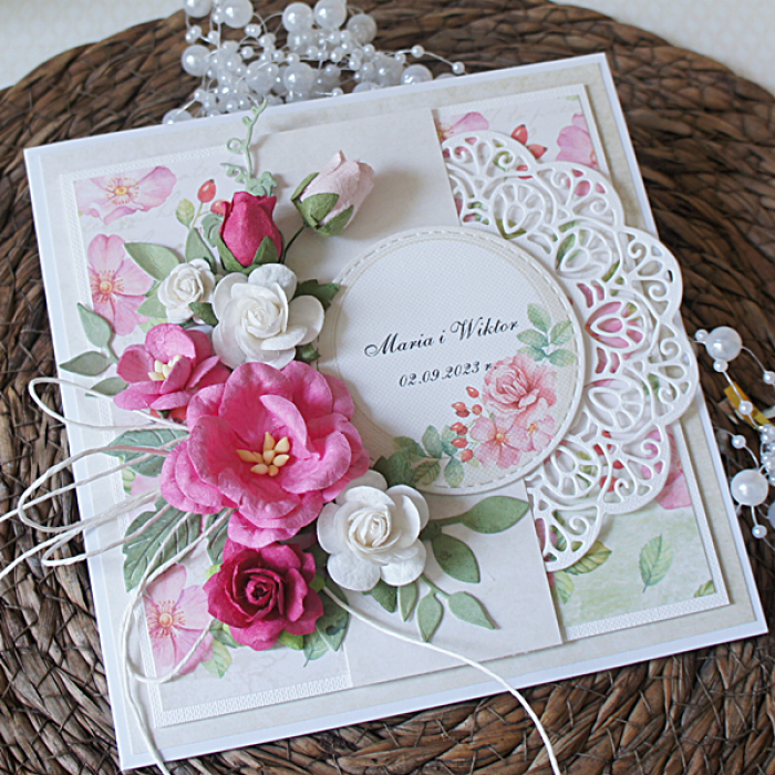 Zadaj pytanie dotyczące produktu: Różana kartka ślubna z personalizacją v.4