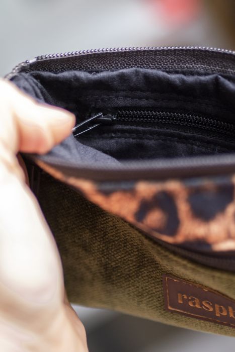 Idealny na karty płatnicze oraz pieniądze. Zapinany na suwak, z przodu kieszonka na drobne, w środku bawełniana podszewka i kieszonka na suwak.