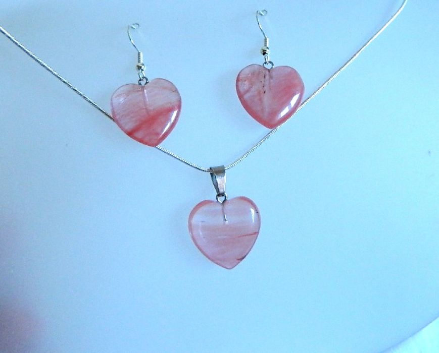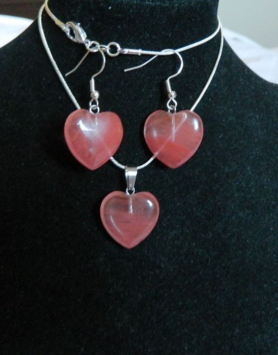 Nazwa produktu: Różowy kwarc-kamień miłości, serduszka, zestaw biżuterii