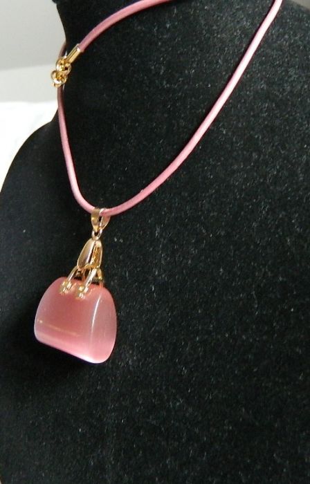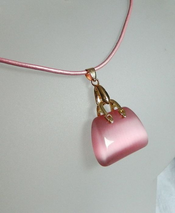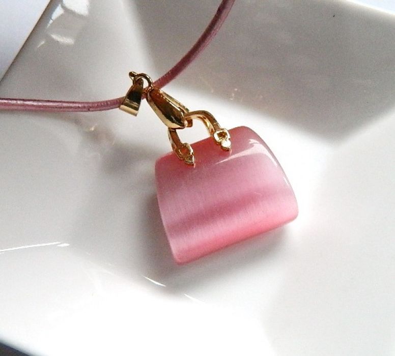 Zadaj pytanie dotyczące produktu: Różowy kwarc "kocie oko" - wisiorek torebka na rzemyku