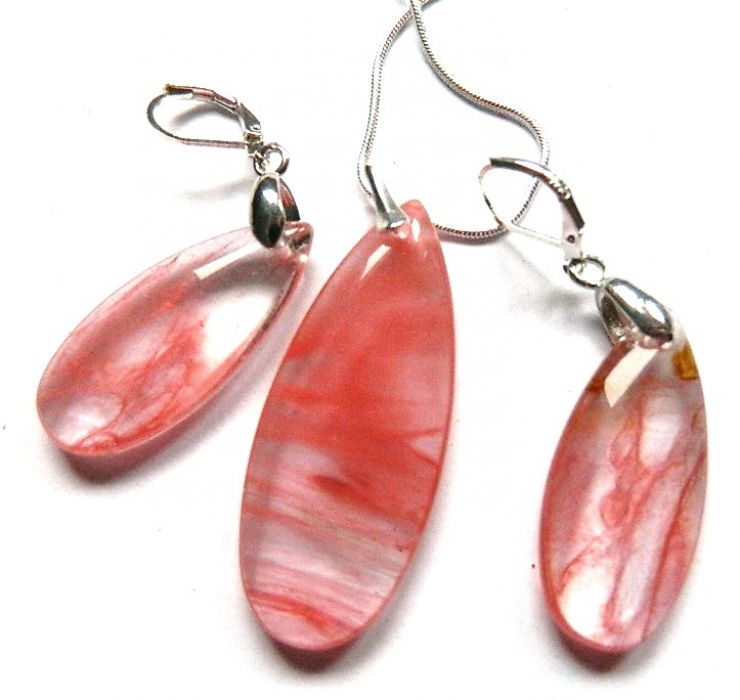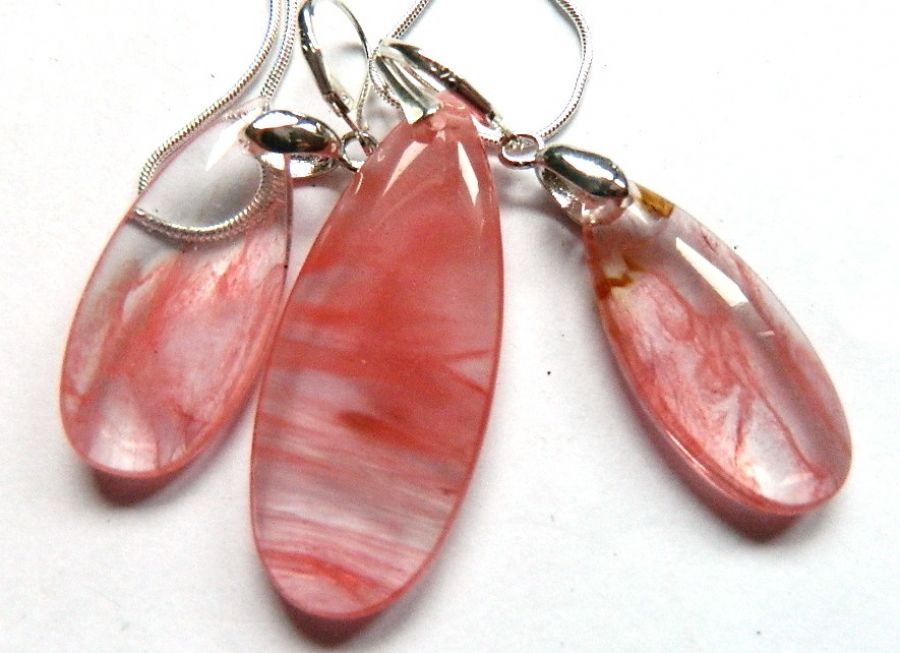 Nazwa produktu: Różowy kwarc-kamień miłości, serduszka, zestaw biżuterii