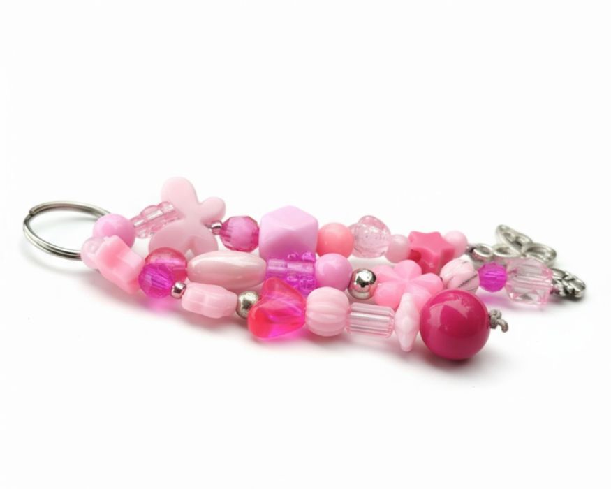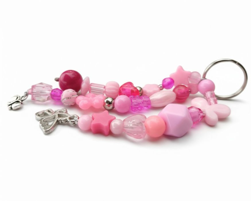 Zadaj pytanie dotyczące produktu: Różowy pastelowy breloczek z motylkami