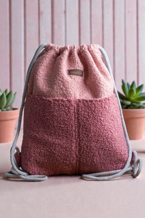 Workoplecak z różowej bukli.
