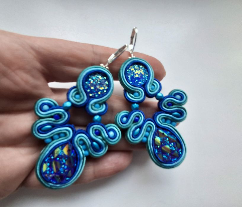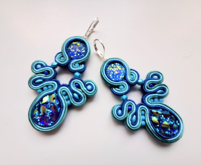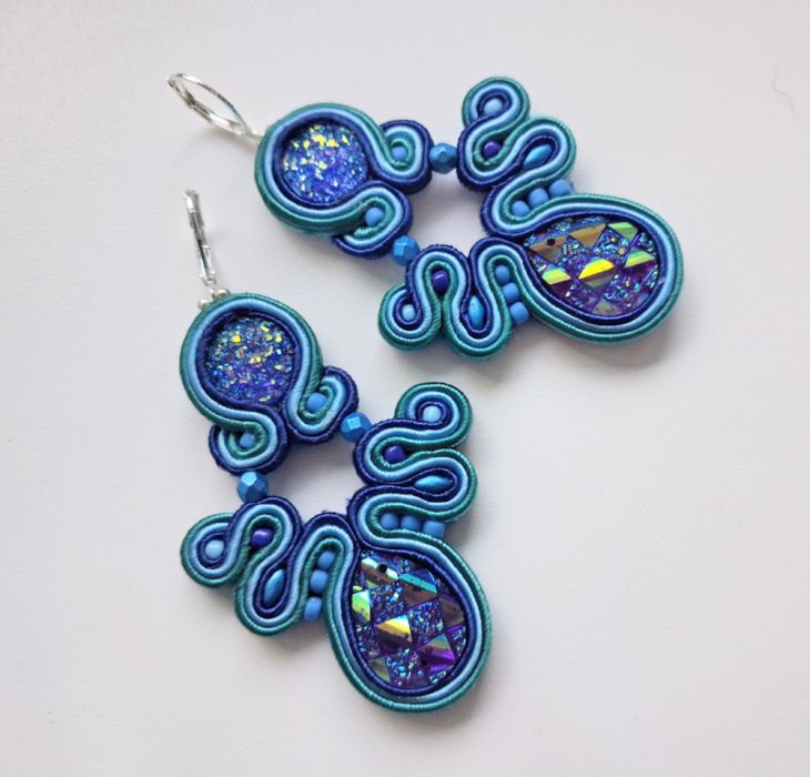 Kolczyki wykonane w modnej technice haftu sutaszowego. Jest ona pracochłonna, ale daje piękne efekty.