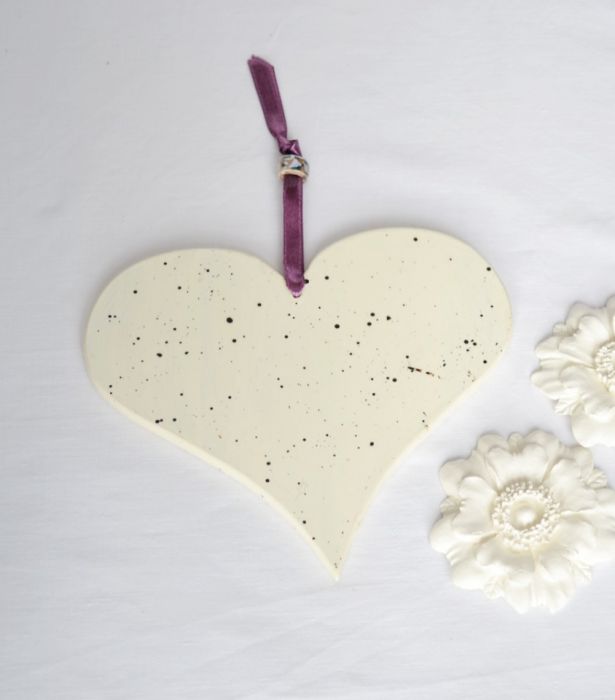 Serce ozdobione z wykorzystaniem techniki decoupage. Całość zabezpieczona została lakierem akrylowym