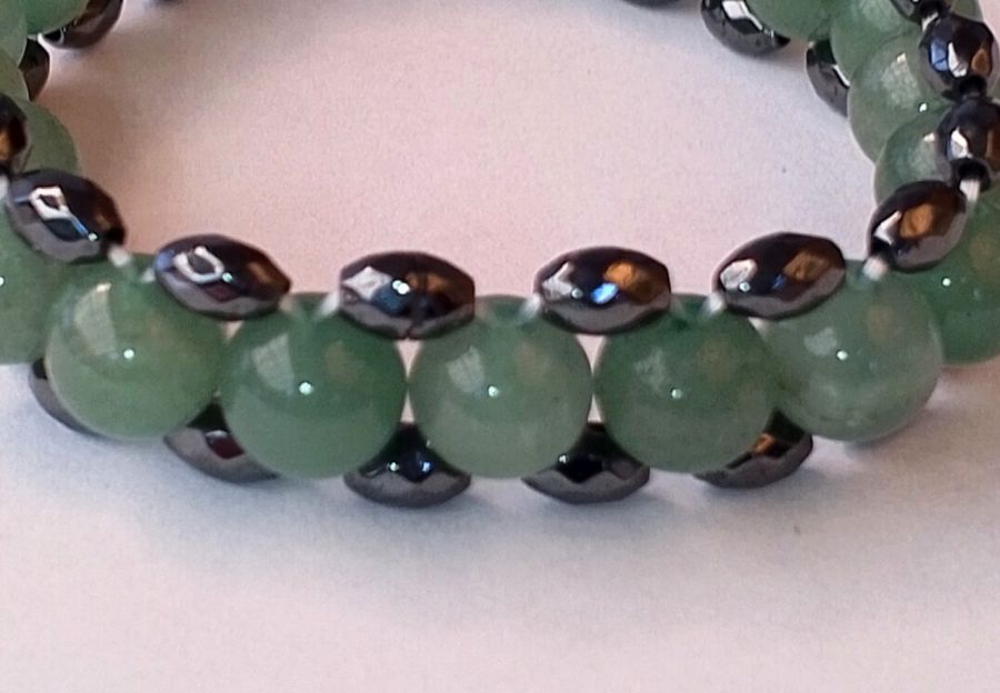 Urocza bransoletka z naturalnego kamienia awenturyn zielony i hematyt . Ręcznie nawlekane koraliki na gumkę jubilerską . Średnica kulki awenturynu 8 mm. Hematyt fasetowany długość 6 mm szerokość 4 mm. Całkowita długość bransoletki 20 cm.