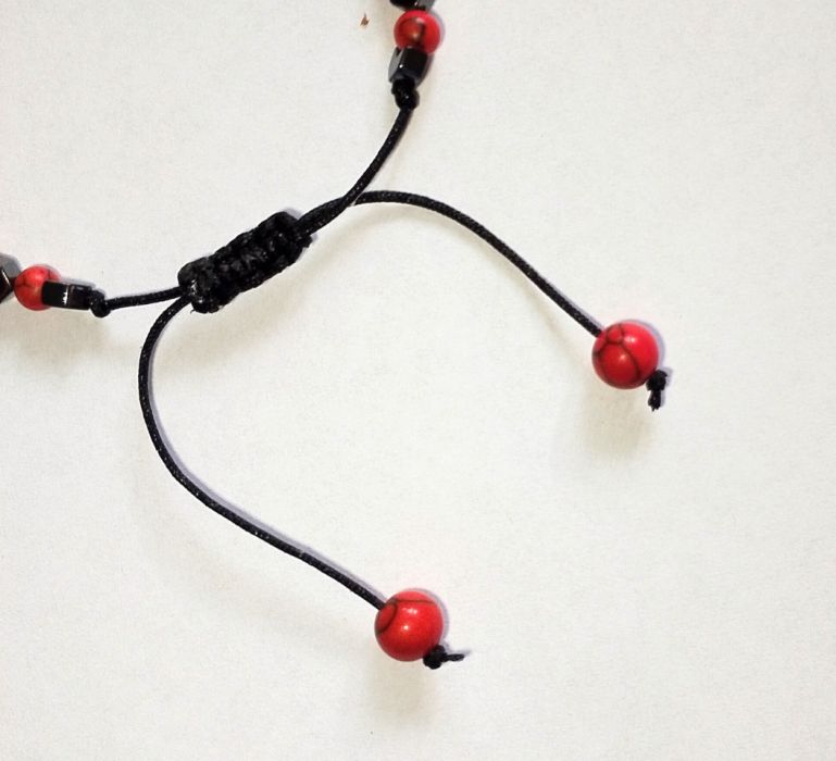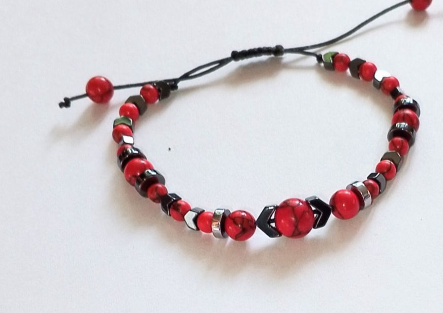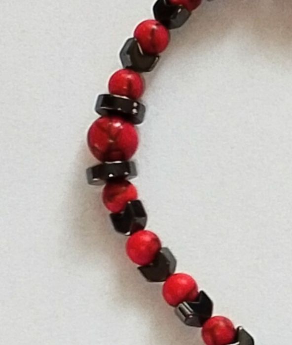 urocza bransoletka z naturalnych kamieni : howlit czerwony , hematyt czarny, hematyt srebrny.