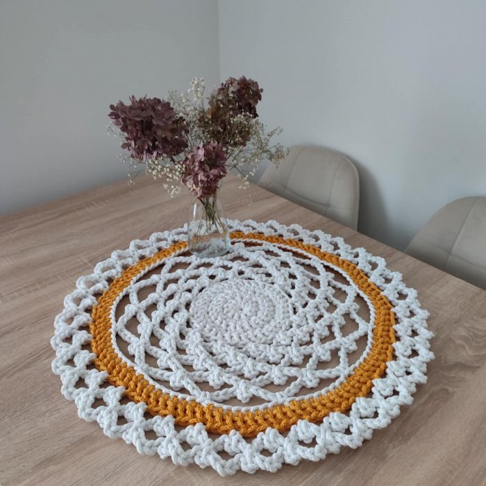 Serweta o średnicy 60cm, wykonana metodą szydełkowania z polskiego sznurka bawełnianego 5mm.