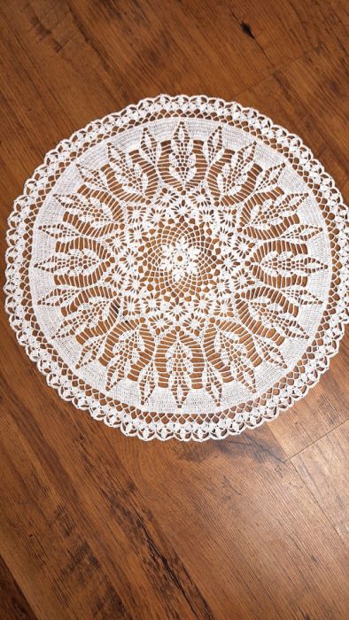 Serwetka szydełkowa, ręcznie wykonana z białego bawełnianego kordonka (100% bawełna). Kształt koła, średnica 50 cm. Idealnie wpisuje się w estetykę boho, vintage oraz minimalistyczny styl skandynawski. Pasuje do każdego pomieszczenia dodając unikalnego, ręcznie robionego charakteru. Stworzy przytulny kącik, udekoruje stolik w salonie. Super prezent dla bliskiej osoby. To nie masowa dekoracja, to małe dzieło sztuki. Produkt można prać w pralce, wymaga krochmalenia ale nie koniecznie, można również rozprasować i gotowe.