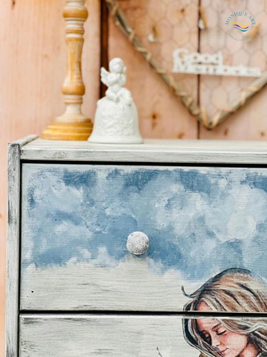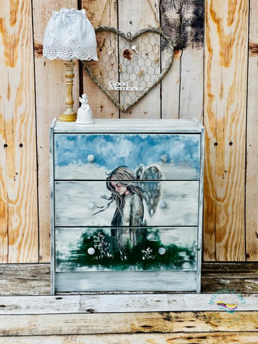 Zadaj pytanie dotyczące produktu: Sielska komoda z aniołem leśnym, unikatowy mebel z duszą