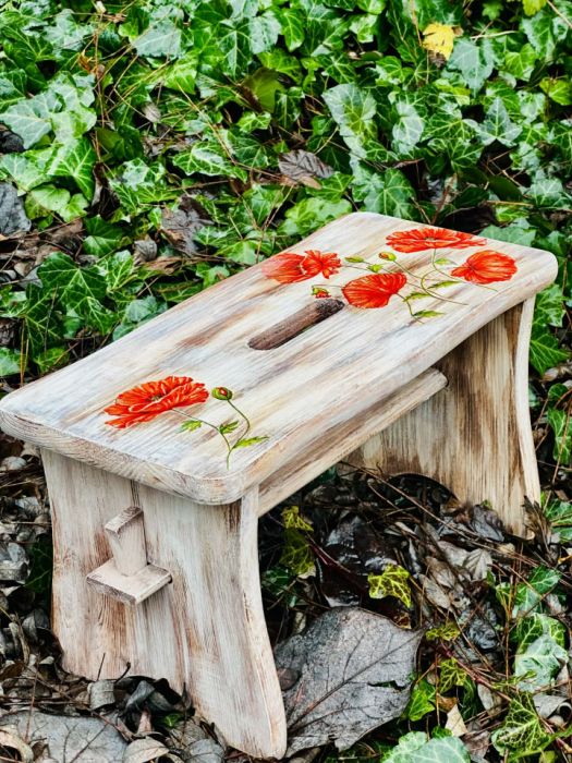 Nazwa produktu: Sielski zydelek, podnóżek, z kwiatami, oryginalny prezent