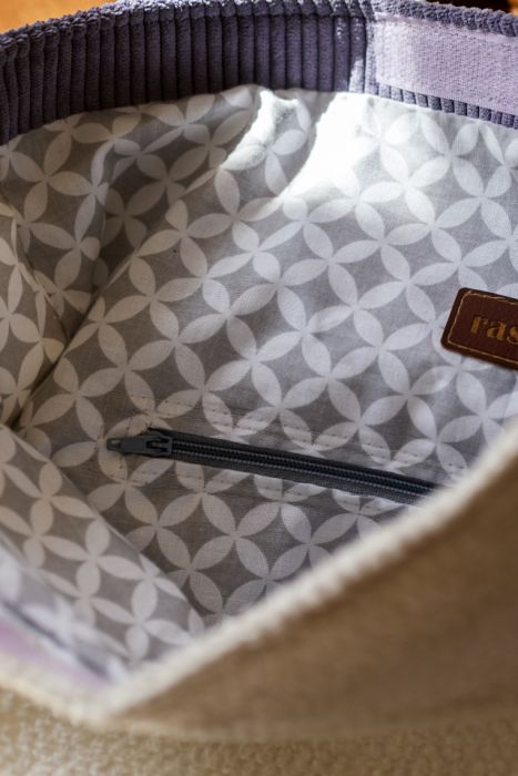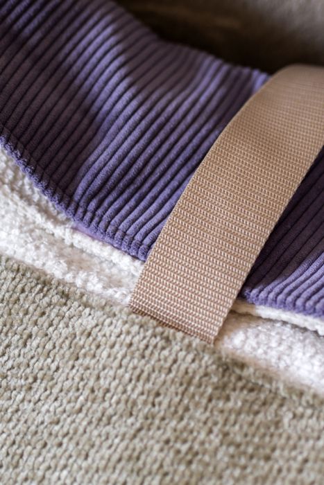 Regulowane paski. W środku szara, bawełniana podszewka oraz mała kieszonka na suwak.