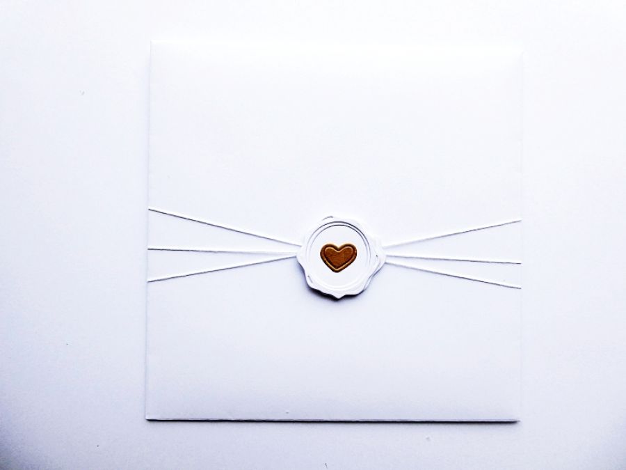 W komplecie jest elegancka biała koperta o podwyższonej gramaturze, która została opleciona białym sznurkiem z papierową pieczęcią i serduszkiem - takie zdobienie czyni całość wyjątkową pamiątką.