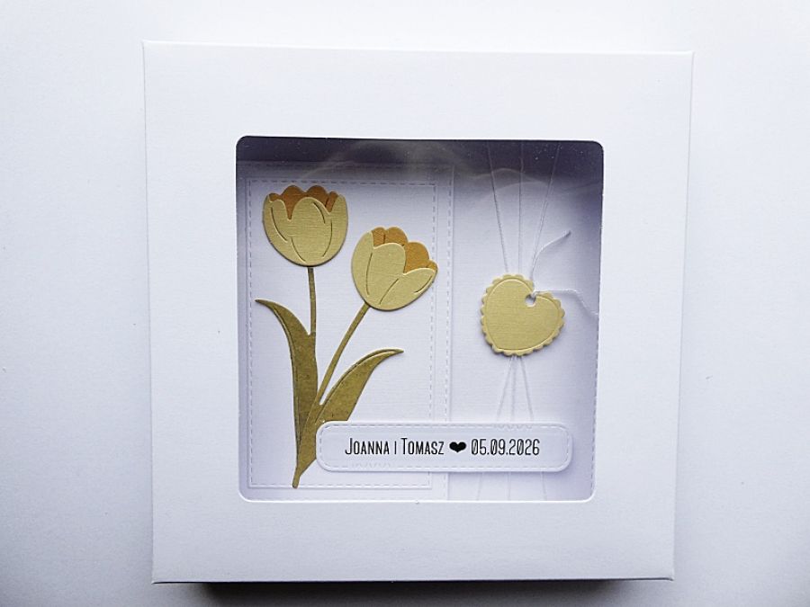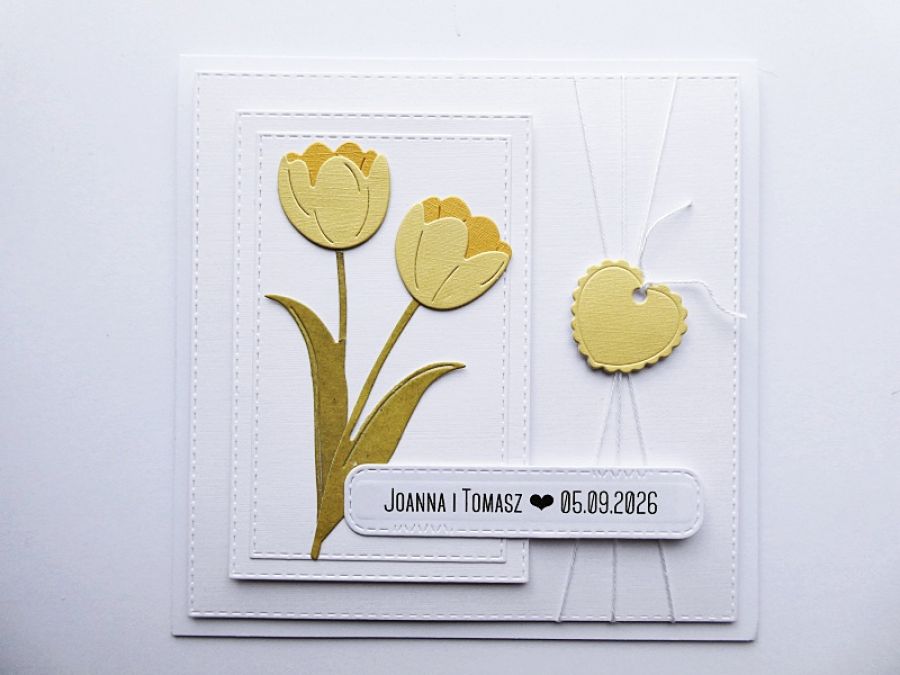 Nazwa produktu: Skromna kartka ślubna żółte tulipany handmade