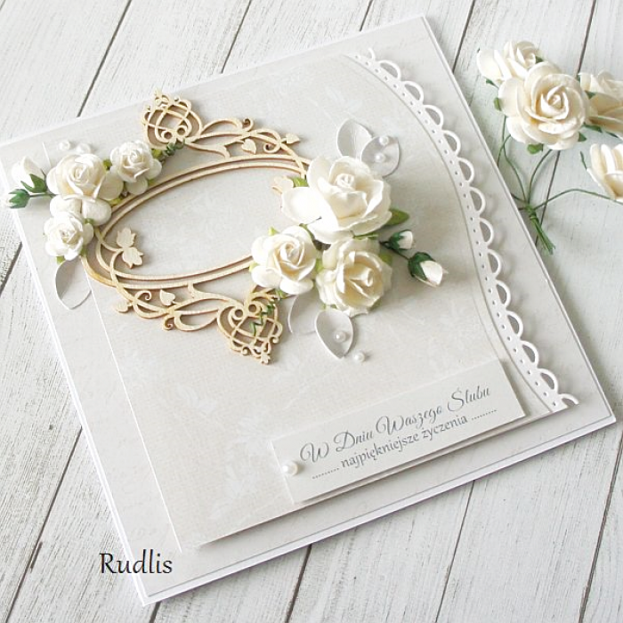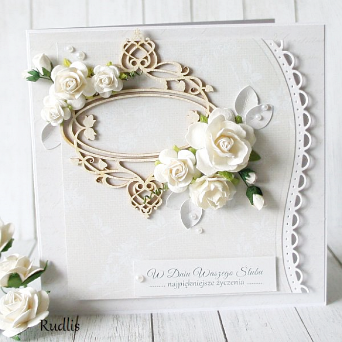 Elegancka kartka ślubna. Wykonana z wykorzystaniem profesjonalnych materiałów.