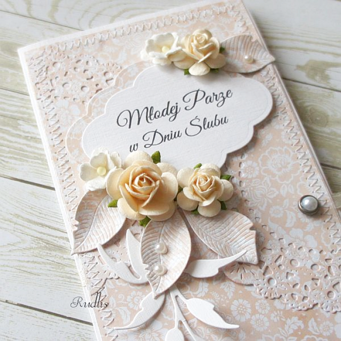 Jestem zachwycona! Karta piękniejsza niż przedstawiona na zdjęciu. Wszystkie moje prośby zostały uwzględnione i wykonane. Na pewno będę jeszcze zamawiać kartki i pudełeczka u Pani Rudlis :D