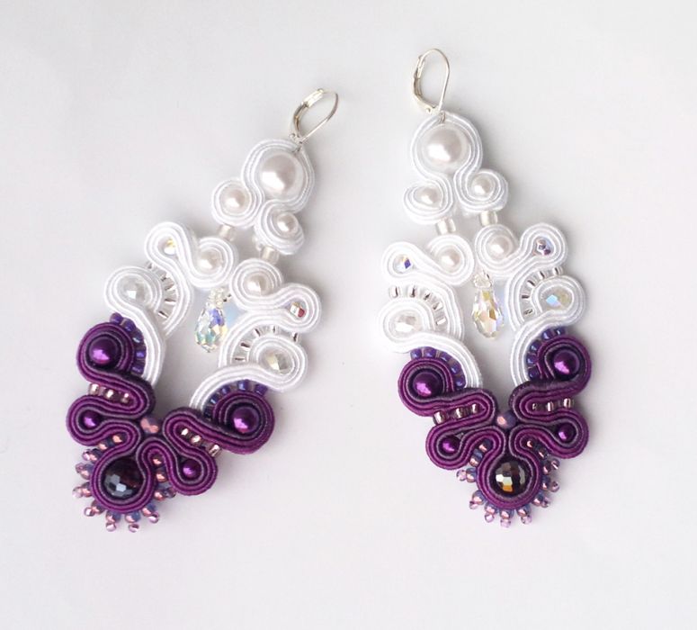 Piękne, lśniące i efektowne kolczyki zostały wykonane ręcznie pracochłonną techniką haftu sutasz. Robią wielkie wrażenie!!! Są lekkie i obustronne. Pozostawiony piękny widok kolczyków z obu stron!