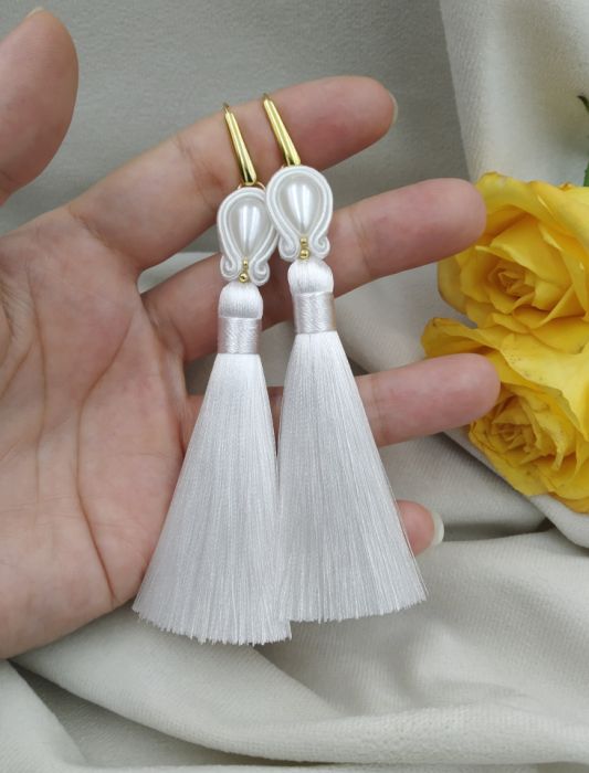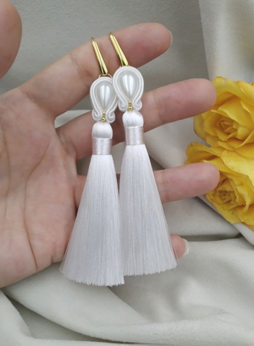 Nazwa produktu: Ślubne kolczyki perłowe boho chwosty frędzle