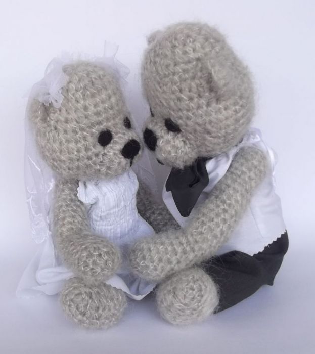 Misiowa Para Młoda wykonana z włóczki na szydełku.