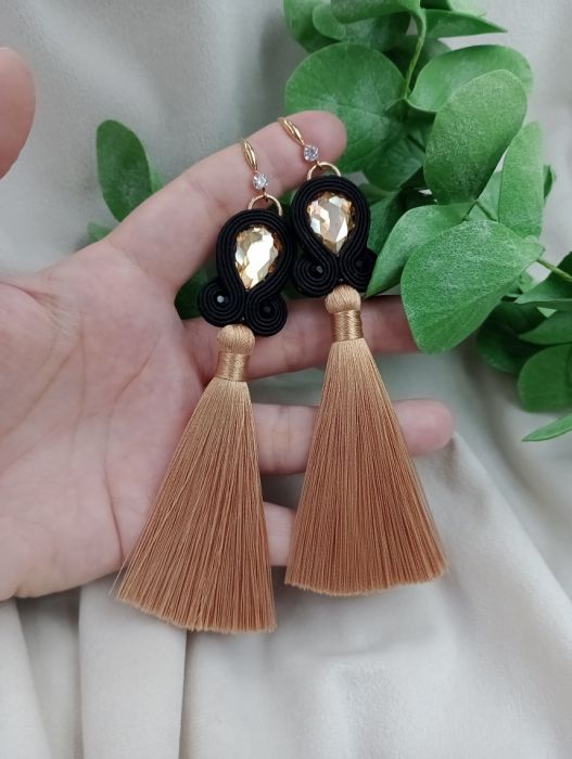 Nazwa produktu: Soutache sutasz kolczyki beżowe chwosty beż