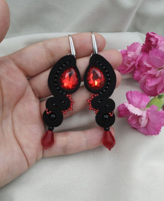 Nazwa produktu: Soutache sutasz kolczyki bordowe czerwone