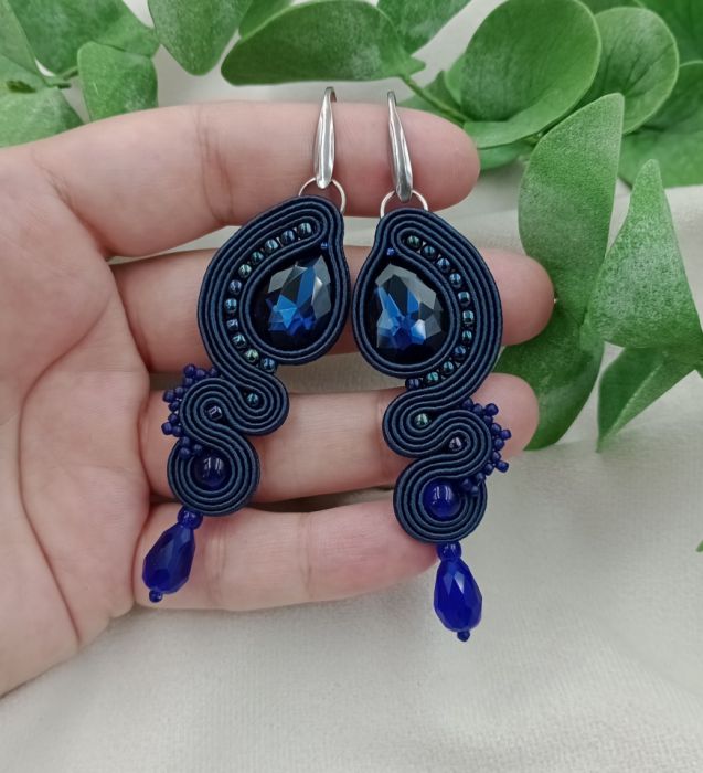 Soutache sutasz kolczyki długie granatowe