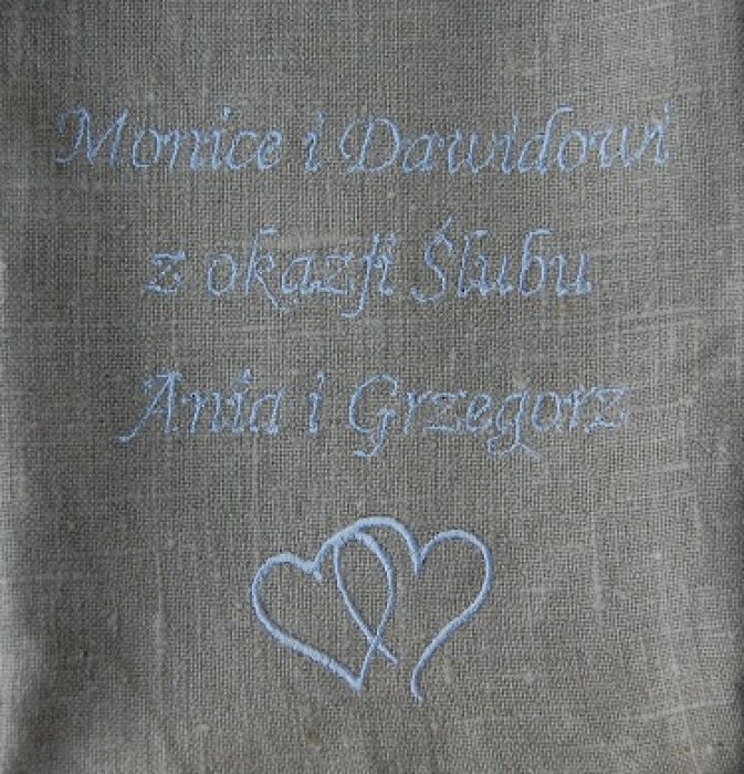 Istnieje możliwość wyhaftowania napisu w innym kolorze lub o innej treści. (W takim przypadku proszę o informację w polu "uwagi do zamówienia".)