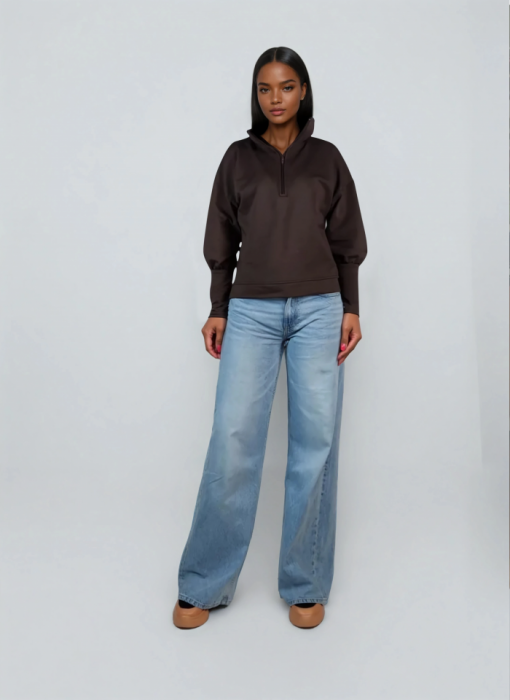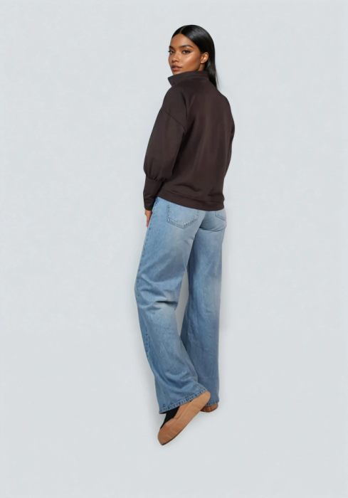 Bluza wkładana przez głowę w kolorze czekoladowym wykonana z wysokiej jakości bawełny, zapewnia komfort noszenia przez cały dzień.
