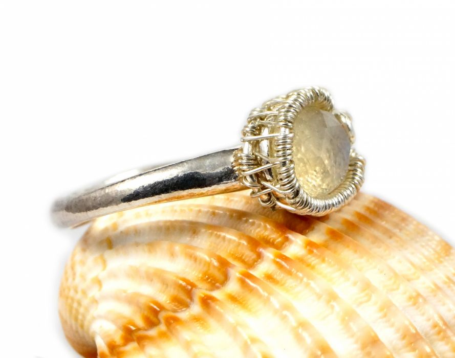Pierścionek wykonany w bardzo pracochłonnej technice wire-wrapping.