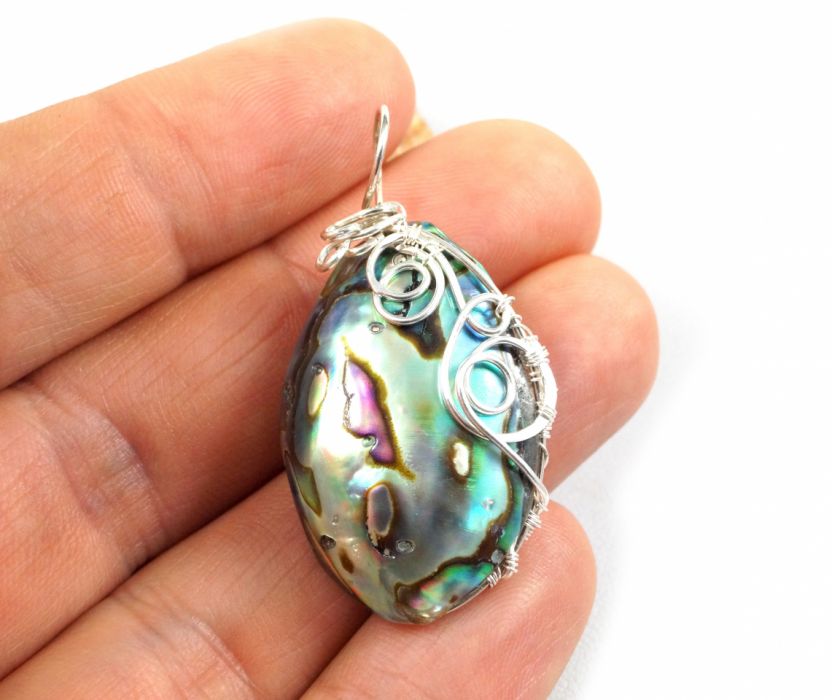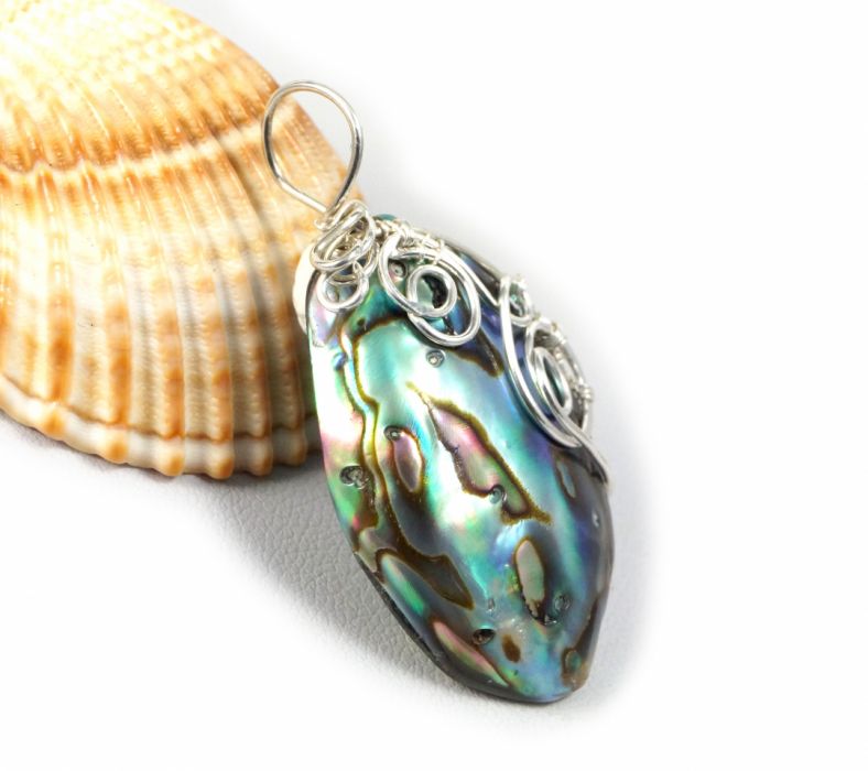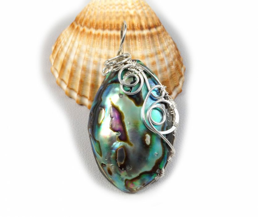 Nazwa produktu: Srebrny wisior z muszlą Abalone wire wrapped