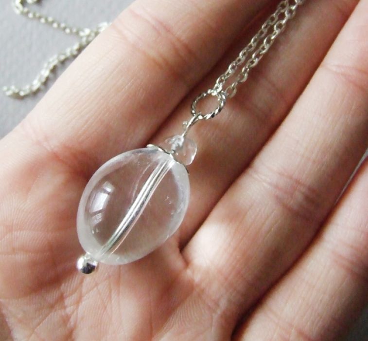 Wisior ciężki, piękny i szlachetny. Wykonany w całości ze srebra 925 (zawieszka-kółeczko też) oraz pięknej bryły naturalnego kryształu górskiego. Ozdobna czapeczka-koniczynka. Polecam