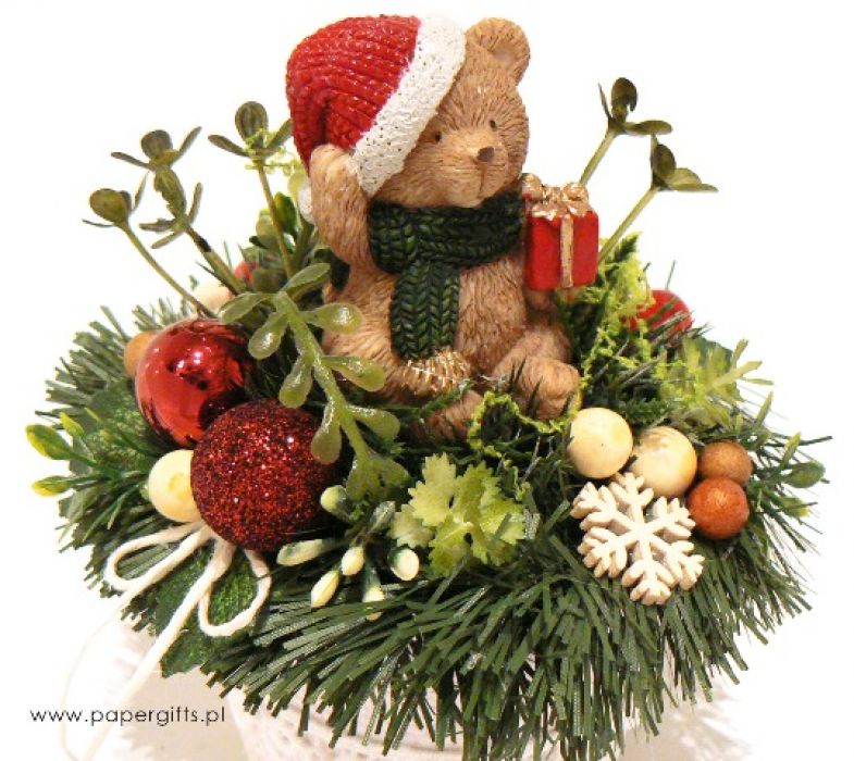 Zadaj pytanie dotyczące produktu: Stroik dekoracja Boże Narodzenie Miś z prezentem