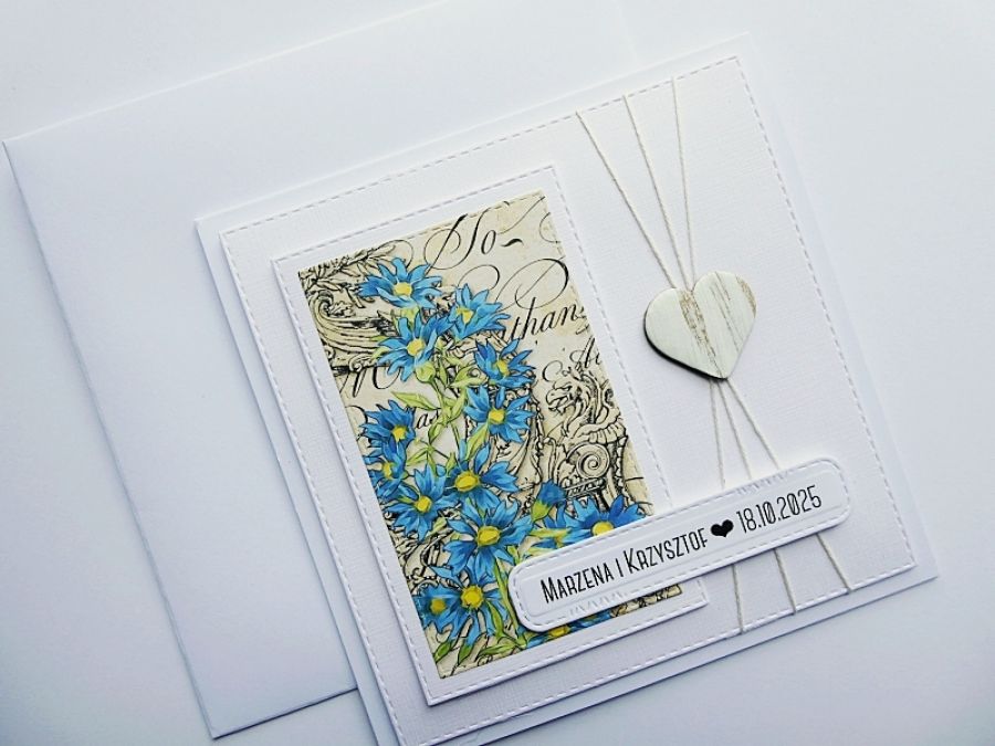 Nazwa produktu: Subtelna kartka niebieskie kwiaty na ślub