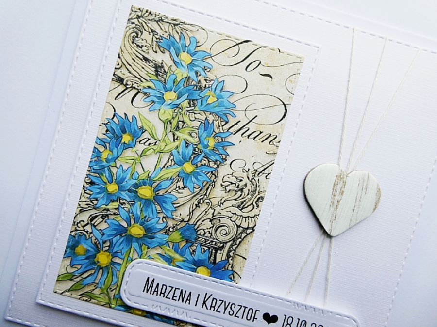Zadaj pytanie dotyczące produktu: Subtelna kartka niebieskie kwiaty na ślub