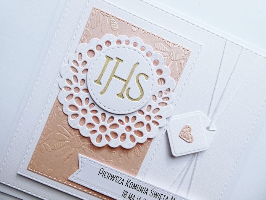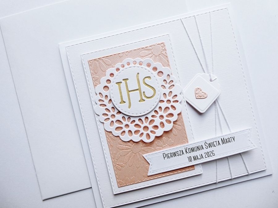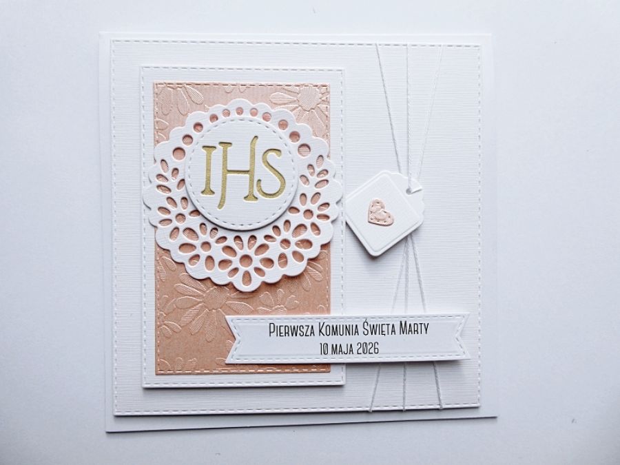 Nazwa produktu: Subtelna ręcznie robiona kartka na Komunię