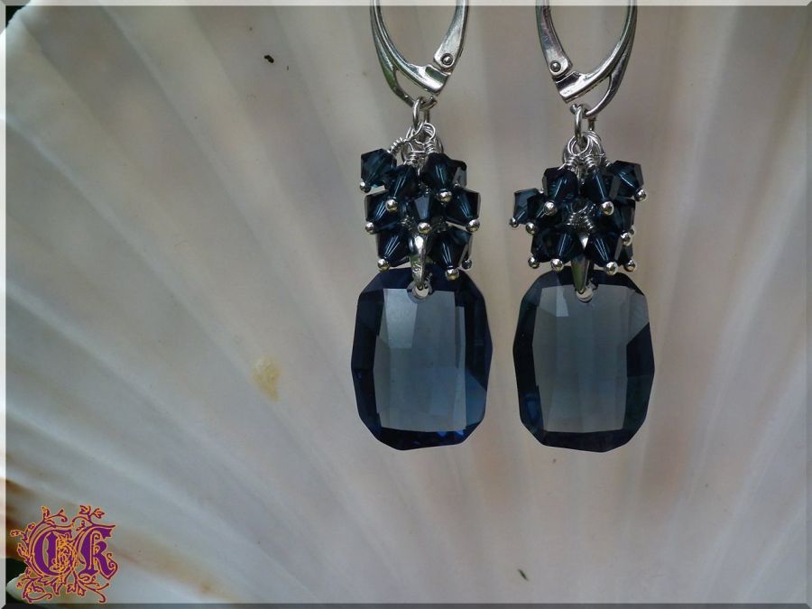 Prezentowane na zdjęciach kolczyki - śliczne i zarazem ekskluzywne, wykonane zostały w całości ze srebra (pr.925) oraz oryginalnych kryształków swarovskiego takich jak - graphic denim blue 19mm oraz bicone 4mm dopasowane do koloru migdałka. Bigle angielskie pr.925.