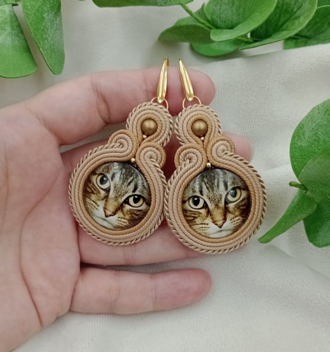 Nazwa produktu: Sutasz duże kolczyki koty kociaki soutache