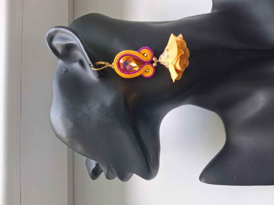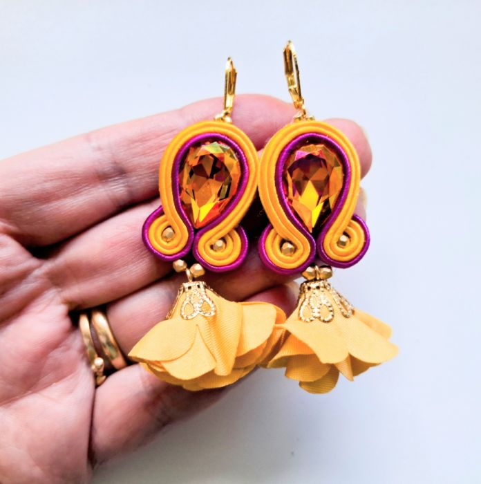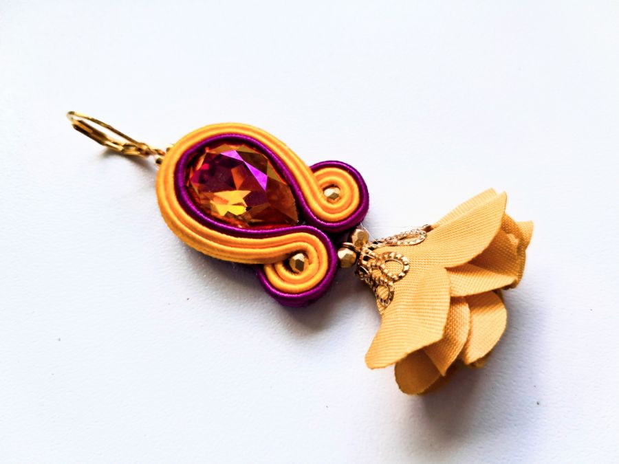 Kolczyki wykonane w modnej technice haftu sutaszowego. Jest ona pracochłonna, ale daje piękne efekty.