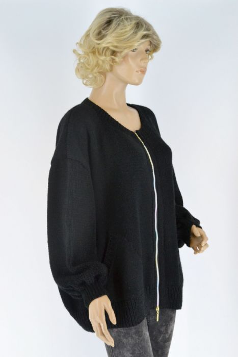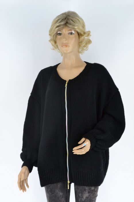 Krój swetra sportowy z lekko opadającymi ramionami, zapinany na zamek rozdzielczy dwusuwakowy. Sweter posiada kieszenie.