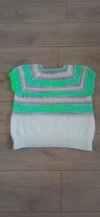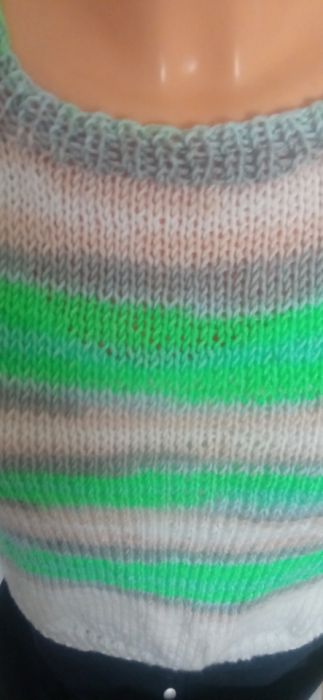 Sweter wykonany ręcznie na drutach z włóczki o składzie bawełna 80%, akryl 20%