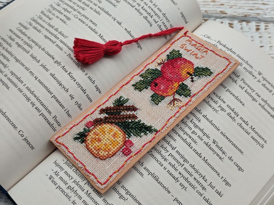 Ręcznie haftowana świąteczna zakładka do książki - Magia Świąt