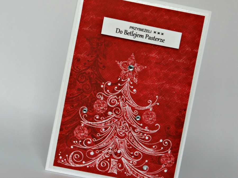 Wyjątkowa i delikatna kartka bożonarodzeniowa, ręcznie wykonana o wymiarach 11 x 15,5 cm. Dekorowana pięknym czerwonym papierem ozdobnym z motywem choinki, ozdobiona srebrnymi półperełkami, które dodają kartce blasku. W środku znajduje się wkładka na życzenia, kartka sprzedawana w komplecie z kopertą i zabezpieczona folią ochronną. Serdecznie zapraszam do zakupu.