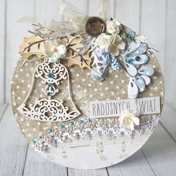 Urocza i oryginalna kartka świąteczna w formie koła.