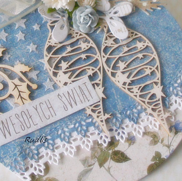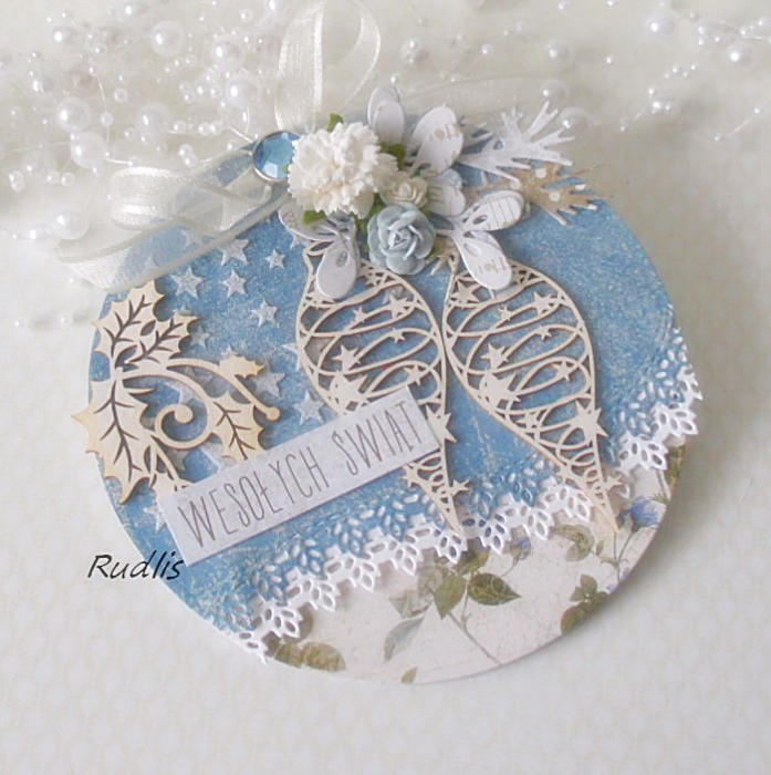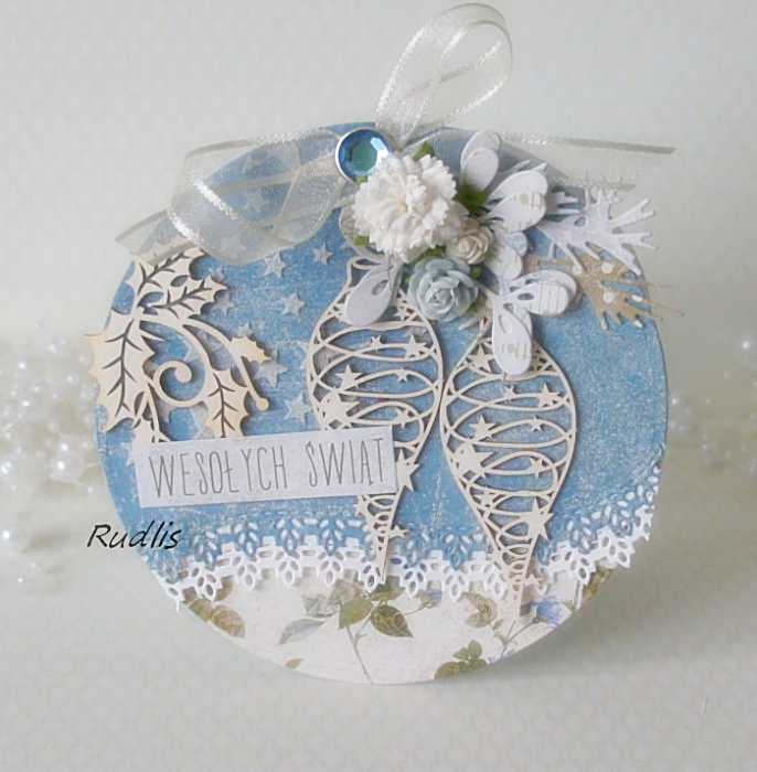 Urocza i oryginalna kartka świąteczna w formie koła.