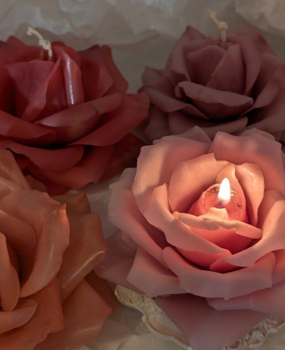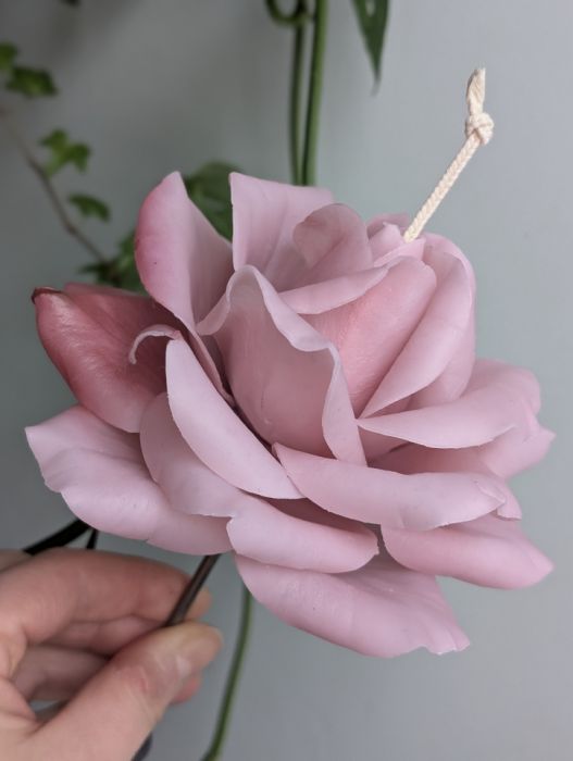 Świeca jest składana z pojedyńczych płaków z dbałością o detale tak aby wyglądała jak prawdziwy kwiat.